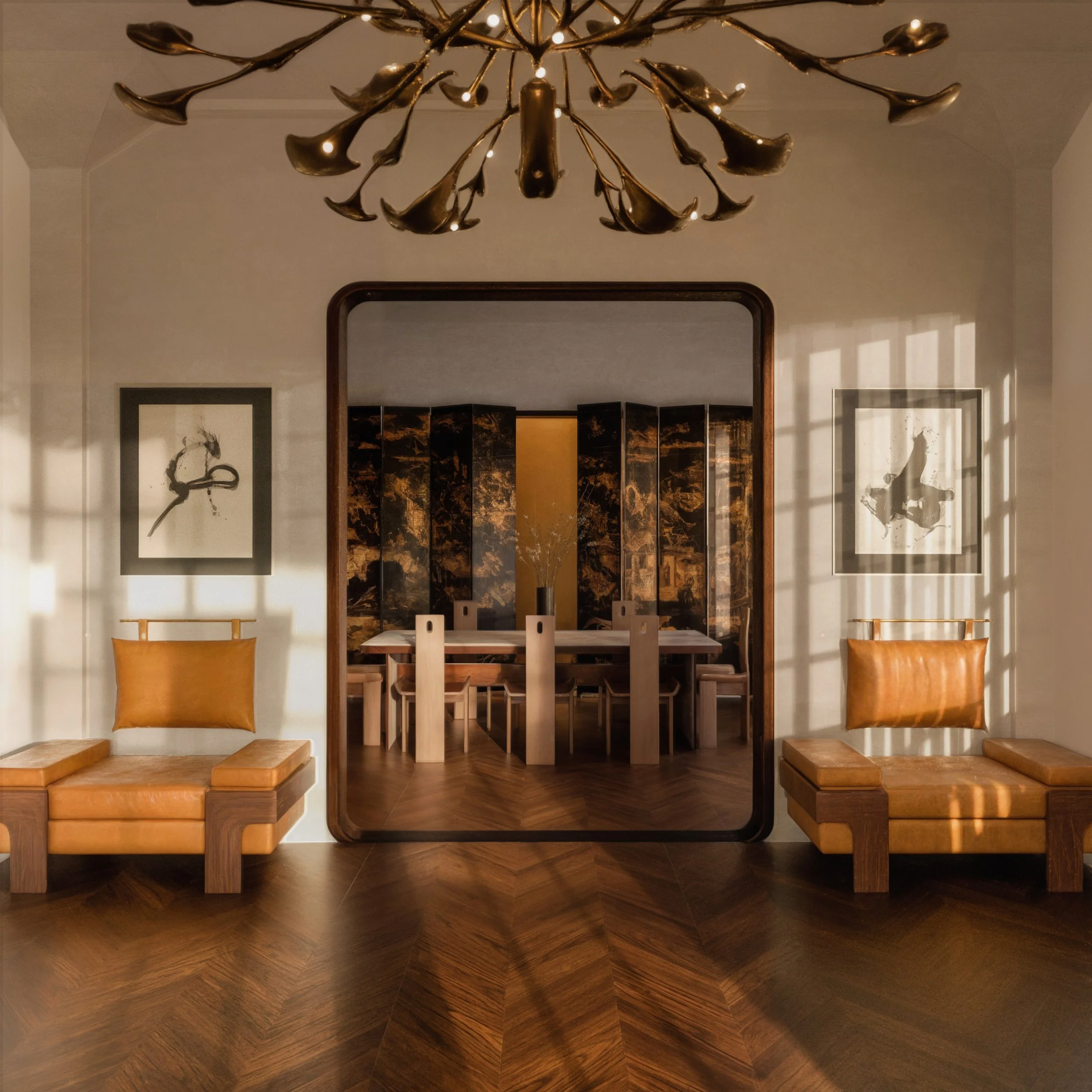 The design was self-directed, with the goal of proposing a cohesive residential narrative grounded in real, obtainable materials and objects. All furnishings, lighting, art, and finishes were selected from existing retailers, galleries, and auction houses, allowing the concept to remain tethered to realistic sourcing rather than speculative design.